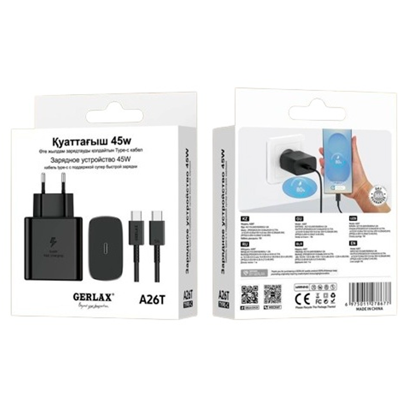 Сетевое зарядное устройство Gerlax A26T (PD 45W, Type-C, Черный)