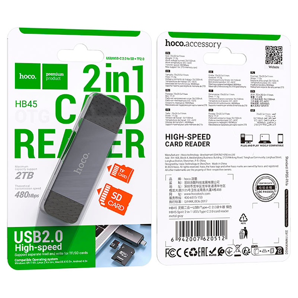 Картридер Hoco HB45 (2-в-1, USB 2.0)